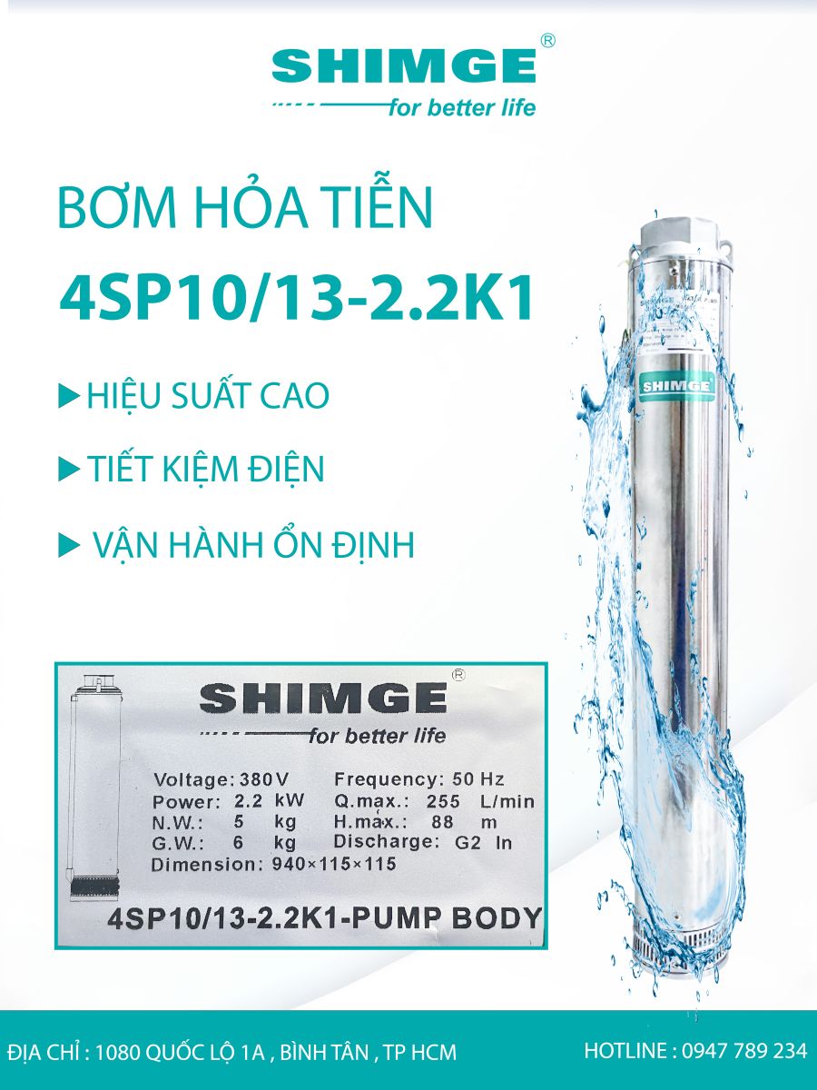 Thông số kỹ thuật chi tiết thân bơm hỏa tiễn SHIMGE 4SP10/13-2.2K1