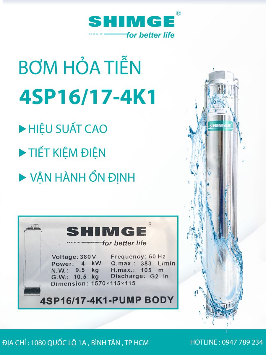 Nếu bạn đang tìm kiếm thân bơm hỏa tiễn giếng khoan sâu 4kW, lưu lượng lớn, cột áp phù hợp và độ bền cao, thì SHIMGE 4SP16/17-4K1 chính là lựa chọn đáng tin cậy. Đây là giải pháp hiệu quả cho cả sinh hoạt và sản xuất, đáp ứng tốt nhu cầu cấp nước hiện nay.
