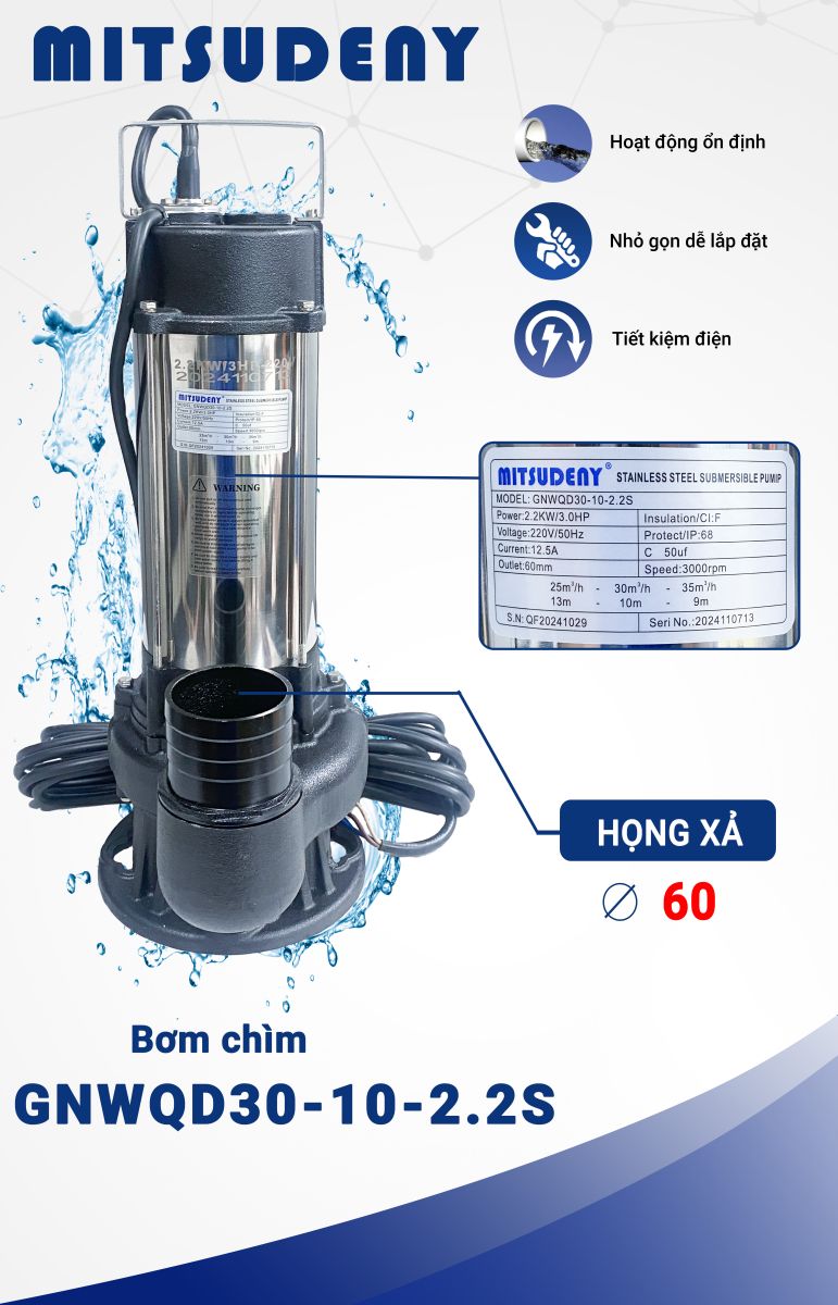 MÁY BƠM CHÌM INOX MITSUDENY GNWQD30-10-2.2S – CÔNG SUẤT MẠNH MẼ, HOẠT ĐỘNG ỔN ĐỊNH, BỀN BỈ VƯỢT TRỘI