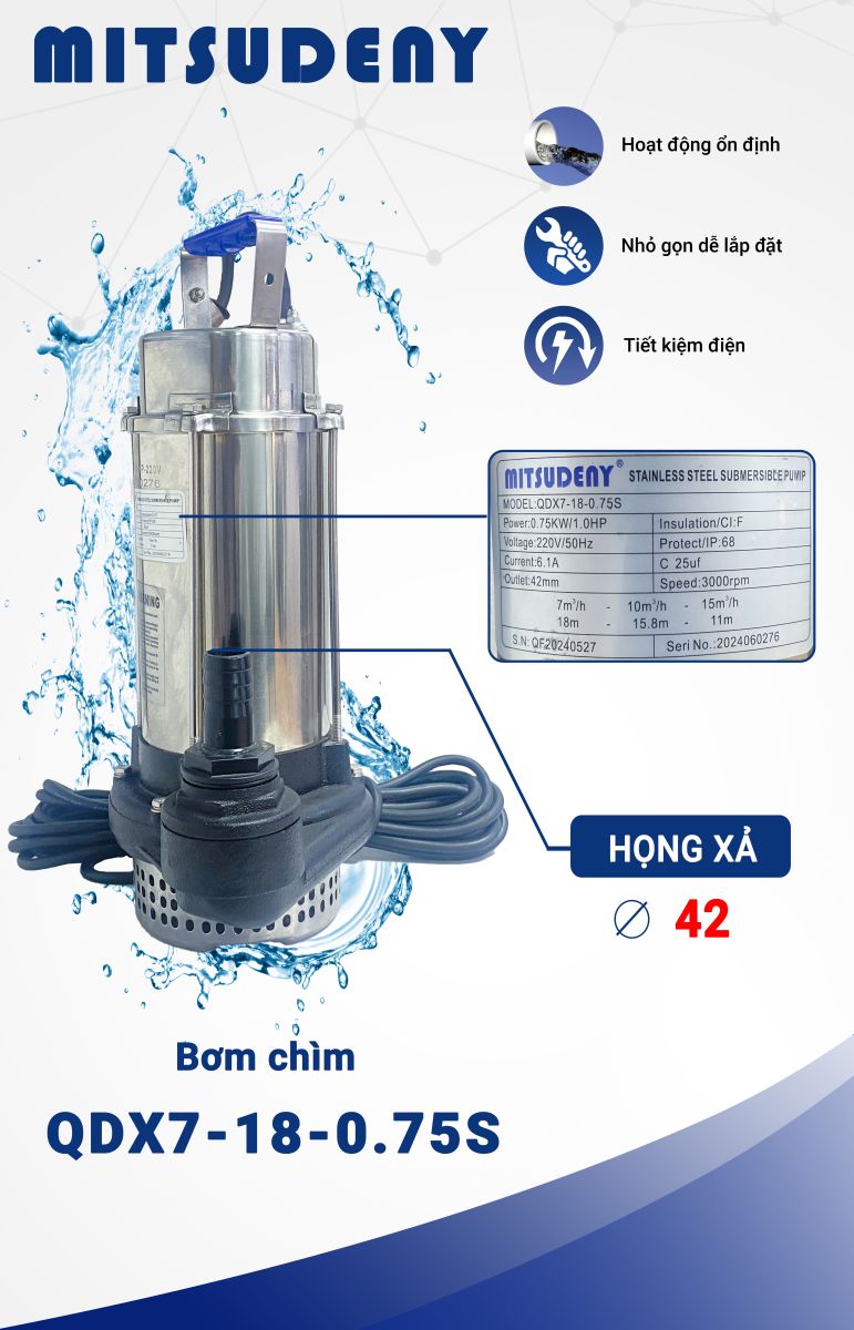 Mitsudeny QDX7-18-0.75S là lựa chọn lý tưởng nếu bạn đang cần một chiếc máy bơm chìm khỏe – bền – lưu lượng lớn – giá hợp lý.
