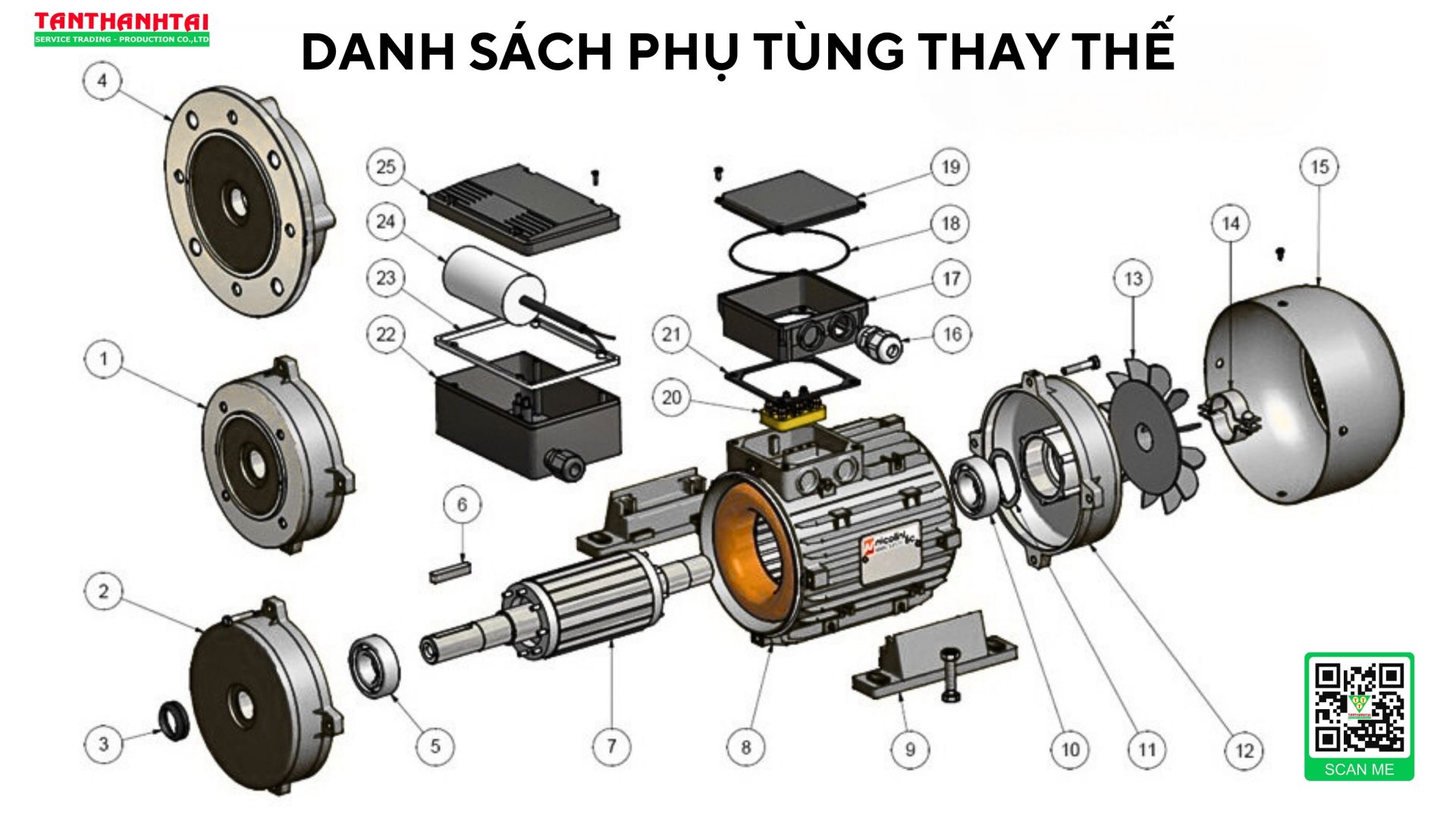 21. Gioăng thân hộp cực: Tăng độ kín giữa hộp cực và thân motor, chống nước và bụi